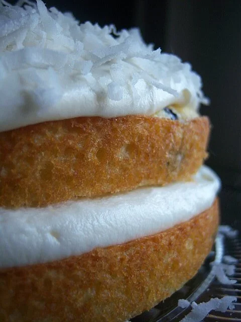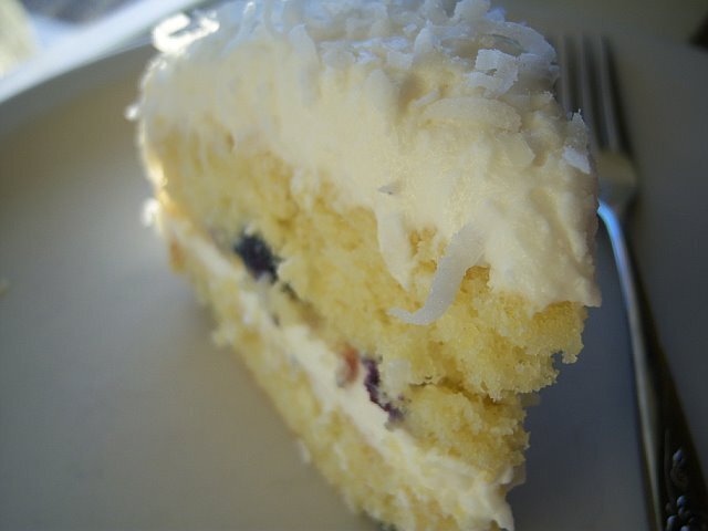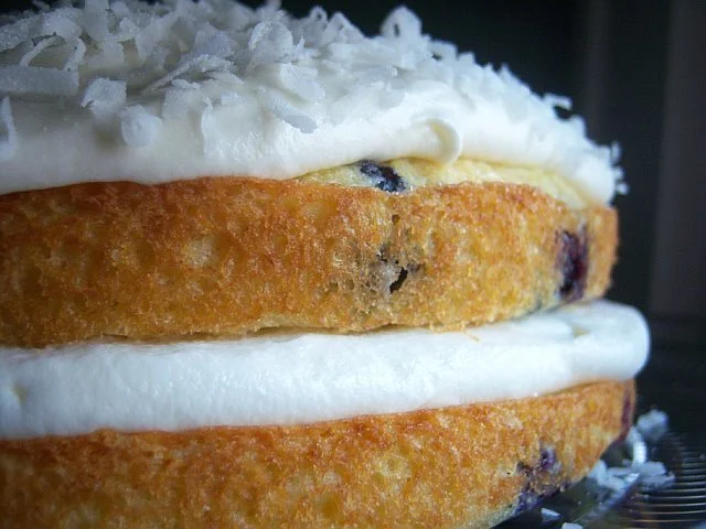 Tender, moist and easy to make, this baby has blueberries, vanilla, a bit of lemon zest, coconut and lots of fluffy, lickable buttercream